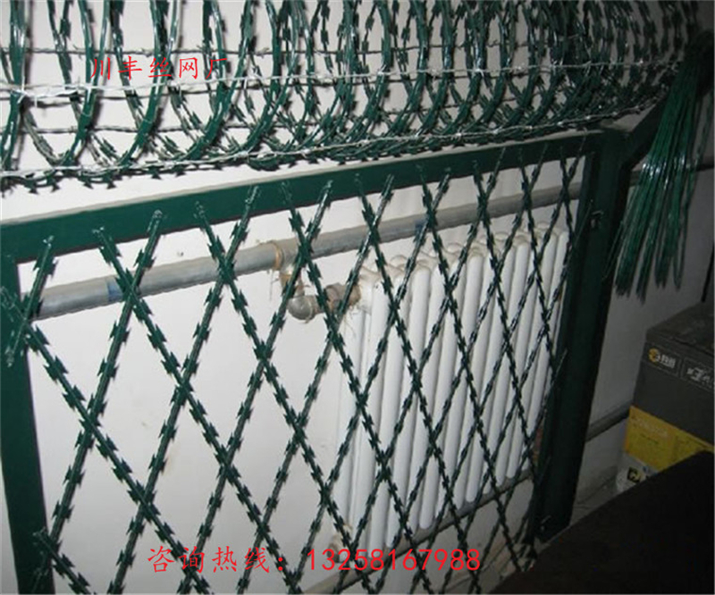 刺繩防護(hù)網(wǎng)具有防腐、防老化、抗曬、耐候等特點(diǎn)。防腐形式有電鍍、熱鍍。刀片刺繩按照安裝方法不同可分為:(蛇腹式) 螺旋式刀片刺繩,直線型刀片刺繩,平板式刀片刺繩,刀片刺繩焊接網(wǎng)等。片刺繩按照安裝方法不同可分為:(蛇腹式) 螺旋式刀片刺繩,直線型刀片刺繩,平板式刀片刺繩,刀片刺繩焊接網(wǎng)等。